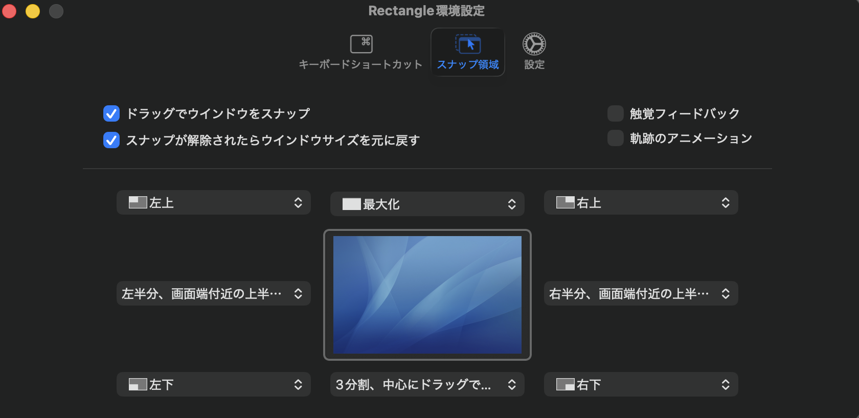Mac標準の操作は、ウィンドウ整理に関してはWindowsに完敗しています。 しかし、Rectangleを入れることで、その弱点は完全に消滅します。